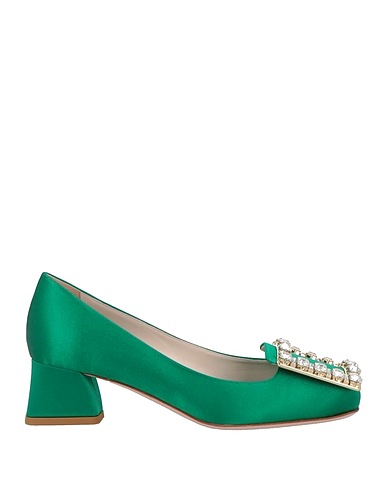 pumps, satin, plain colour with appliqués, crystals, leather lining, square toe, geometric heel, covered heel, leather sole, contains non-textile parts of animal origin