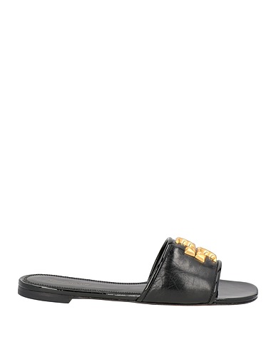 slide sandals, leather, brand logo, plain colour with appliqués, leather lining, square toe, flat, leather/rubber sole, contains non-textile parts of animal origin, large sized