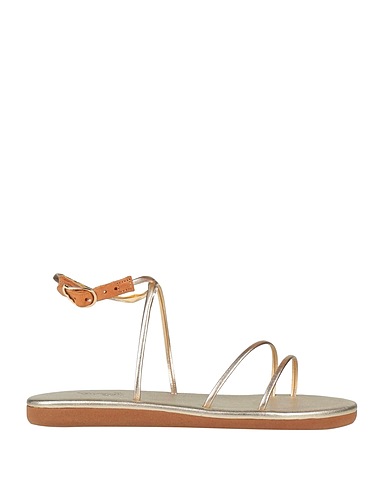 ankle strap sandals, coated fabric, metallic, plain colour, no appliqués, lined interior, round toe, flat, rubber cleated sole