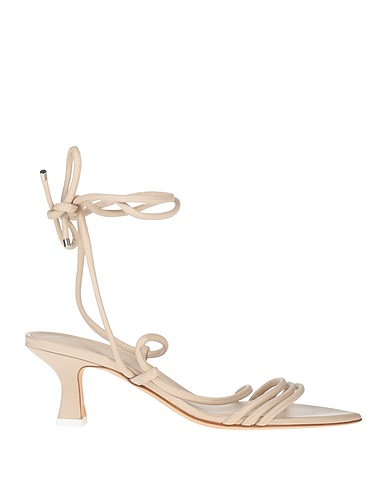sandals, leather, plain colour, no appliqués, leather lining, ties at ankle, pointed toe, spool heel, leather sole, contains non-textile parts of animal origin