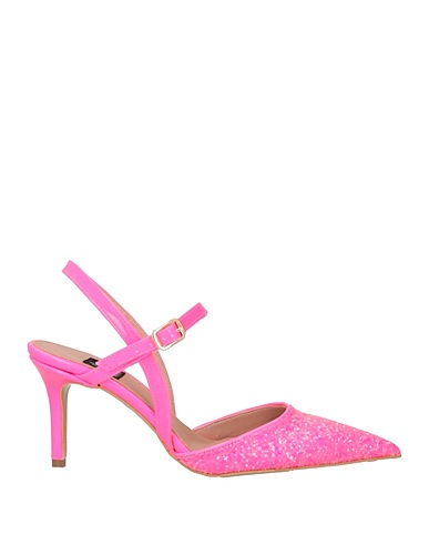 coated fabric, glittered, neon, no appliqués, plain colour, rubber lining, buckle-fastening ankle strap, pointed toe, spike heel, covered heel, leather sole, contains non-textile parts of animal origin, slingback pumps