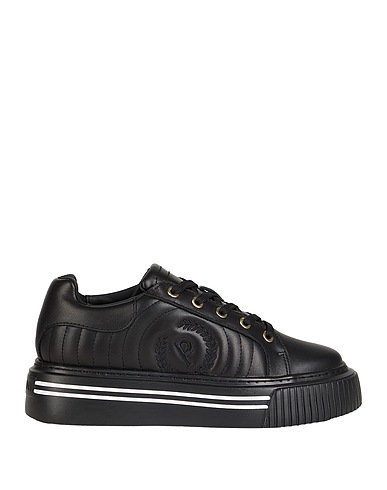 low-top trainers, leather, metallic, two-tone, brand logo, embroidered, leather lining, lace-up, elasticated inserts, round toe, flatform, contains non-textile parts of animal origin