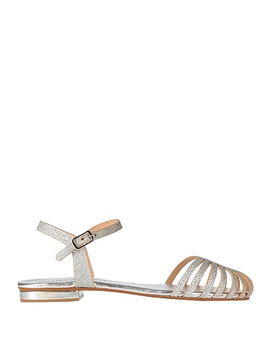 fisherman sandals, leather, metallic, plain colour, no appliqués, fully lined, buckle-fastening ankle strap, round toe, flat, leather sole, contains non-textile parts of animal origin