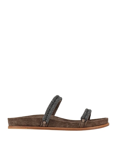 sandals, leather, plain colour, embellished, leather lining, round toe, flat, leather/rubber sole, contains non-textile parts of animal origin