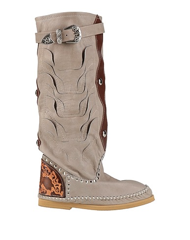 boots, leather, brand logo, studs, plain colour with appliqués, leather lining, round toe, flat, rubber sole, handmade, contains non-textile parts of animal origin