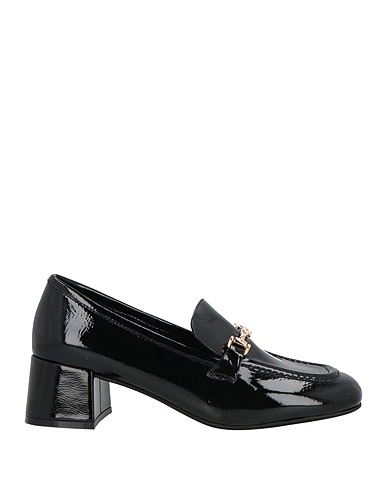 loafers, patent leather, embellished, plain colour with appliqués, leather lining, round toe, square heel, rubber sole, contains non-textile parts of animal origin