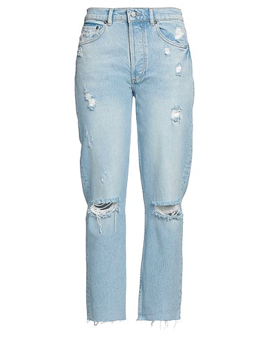 denim, worn effect, faded, brand logo, solid colour, light wash, high waisted, belt loops, straight leg, regular fit, button closing, five pockets, straight-leg model