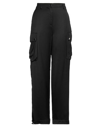 satin, brand logo, solid colour, high waisted, belt loops, tapered leg, regular fit, zipper closure, button closing, multipockets, cargo