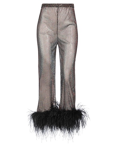 straight-leg trousers, mesh fabric, plain colour with appliqués, feathers, crystals, low-crotch, elasticised waist, regular fit, without pockets, hand wash, do not tumble dry, cropped