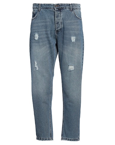 tapered jeans, denim, distressed, plain colour, brand logo, medium wash, mid rise, regular fit, button fastenings, five pockets, hand wash, do not bleach, do not tumble dry