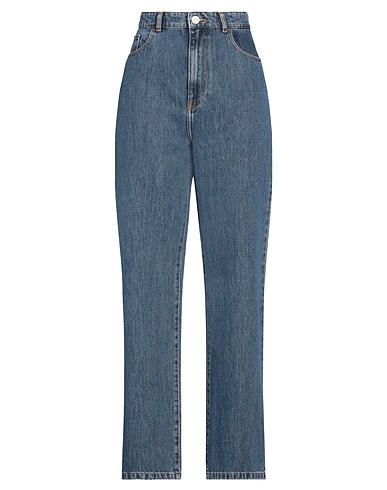 mom jeans, denim, plain colour, brand logo, medium wash, high waisted, belt loops, slim fit, zip fastening, 1 button, multipockets, machine wash, do not bleach, do not tumble dry