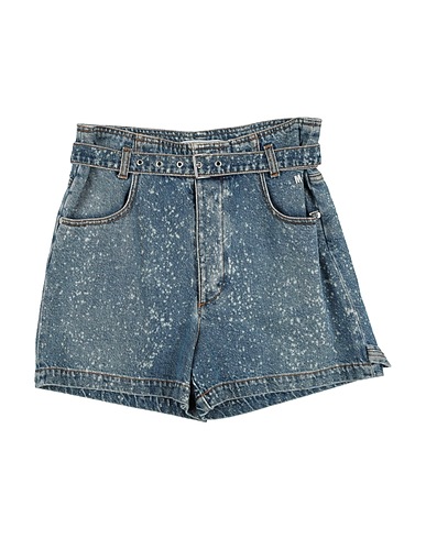 shorts, denim, tie-dyed, embroidered logo, belt, medium wash, high waisted, belt loops, button fastenings, slit pockets, patch pockets, machine wash, do not bleach, do not tumble dry, planning a weekend getaway or beach holiday? this is the effortless summer style you need