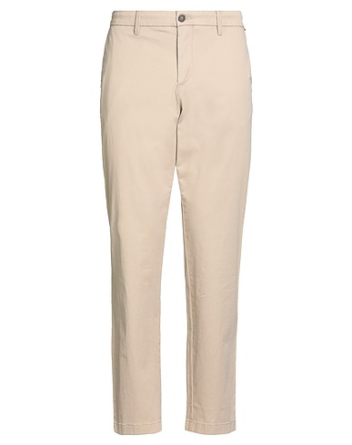 chino trousers, twill, stretchy fabric, plain colour, brand logo, mid rise, belt loops, tapered leg, slim fit, zip fastening, slit pockets, welt pockets, machine wash, tumble dry, contains non-textile parts of animal origin
