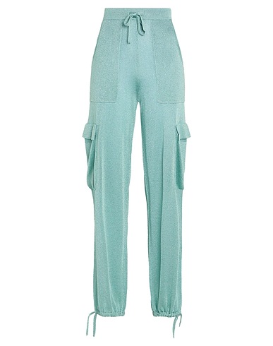 cargo trousers, knitted, metallic, lightweight knit, plain colour, no appliqués, high waisted, elasticised waist, relaxed fit, drawstring fastening, drawstring hem, slit pockets, flap pockets, hand wash or dry clean, do not bleach, do not tumble dry