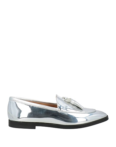 slippers, leather, coated effect, metallic, plain colour, tassels, leather lining, round toe, flat, rubber sole, contains non-textile parts of animal origin
