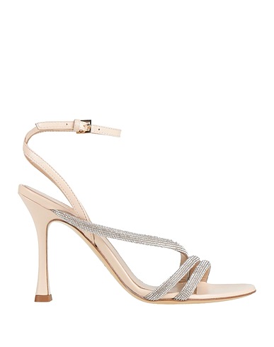 ankle strap sandals, leather, plain colour with appliqués, crystals, leather lining, buckle-fastening ankle strap, round toe, spool heel, covered heel, leather sole, contains non-textile parts of animal origin, go extra glam with chic party accessories for your next event or night out