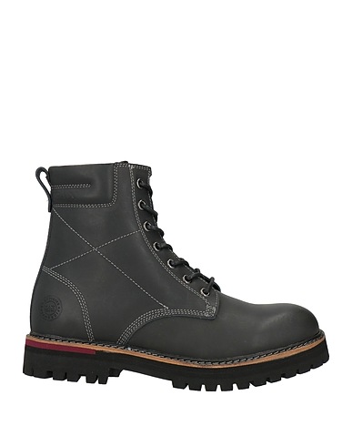 hiking boots, leather, plain colour, brand logo, leather lining, lace-up, round toe, low heel, lug sole, contains non-textile parts of animal origin