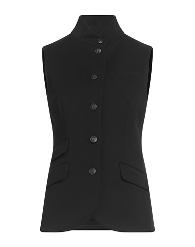 single-breasted blazer, jersey, plain colour, no appliqués, turtleneck, sleeveless, partially lined, button fastenings, multipockets, flap pockets, stretch, machine wash or dry clean, do not bleach, do not tumble dry