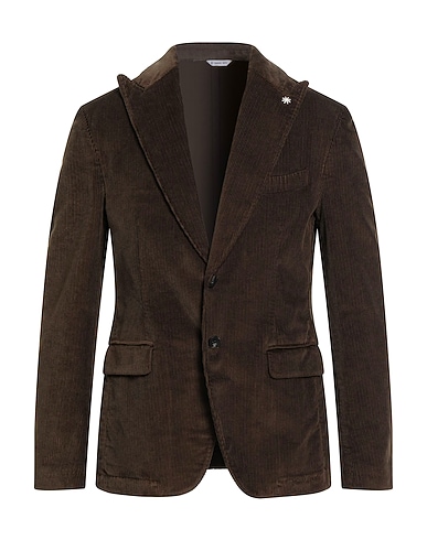 single-breasted blazer, corduroy, stretchy fabric, plain colour, brooch, lapel collar, long sleeves, partially lined, button fastenings, flap pockets, internal pockets, dual back vents, machine wash or dry clean, do not bleach, do not tumble dry