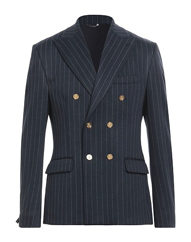 flannel, no appliqués, pinstriped, lapel collar, long sleeves, buttoned cuffs, fully lined, button fastenings, flap pockets, stretch, dry clean, do not bleach, do not tumble dry, double-breasted blazer