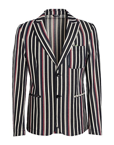 single-breasted blazer, chambray, brand logo, striped, lapel collar, long sleeves, partially lined, button fastenings, multipockets, stretch, dry clean, do not bleach, do not tumble dry
