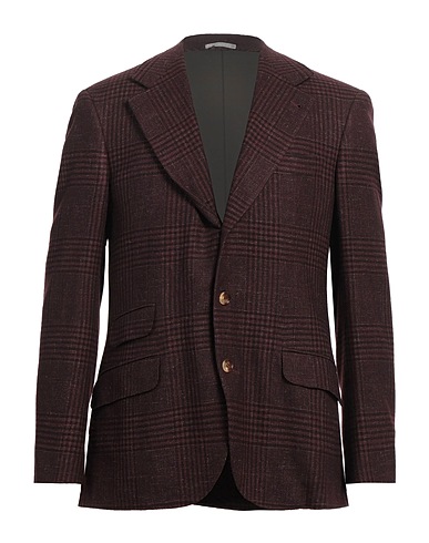 single-breasted blazer, felt, prince of wales check, no appliqués, lapel collar, long sleeves, buttoned cuffs, partially lined, button fastenings, flap pockets, dual back vents, contains non-textile parts of animal origin, dry clean, do not bleach, do not tumble dry