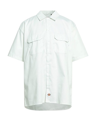 regular-fit shirt, gabardine, plain colour, brand logo, classic collar, short sleeves, button fastenings, two chest pockets, this brand runs large
