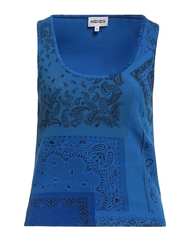 top, knitted, ribbed, lightweight knit, paisley-print, brand logo, scoop neckline, sleeveless, unlined, stretch