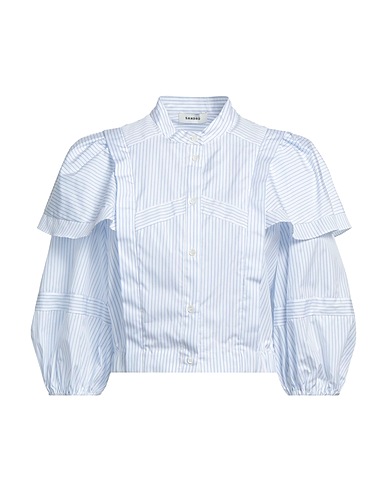 woven, no appliqués, striped, mandarin collar, 3/4 length sleeves, cuffs with elastic, button fastenings, no pockets, contains non-textile parts of animal origin, shirt