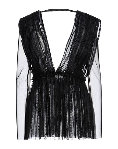 tulle, embroidered, pleated, plain colour, deep neckline, long sleeves, without pockets, top, this brand runs small