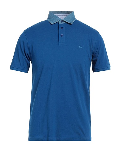 piqué, denim, embroidered logo, two-tone, polo collar, short sleeves, button fastenings, without pockets, side splits, hand wash or dry clean, do not bleach, do not tumble dry