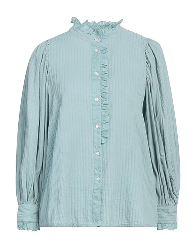 ruched shirt, woven, ruffles, plain colour, mandarin collar, long sleeves, buttoned cuffs, button fastenings, without pockets, hand wash, do not bleach, do not tumble dry