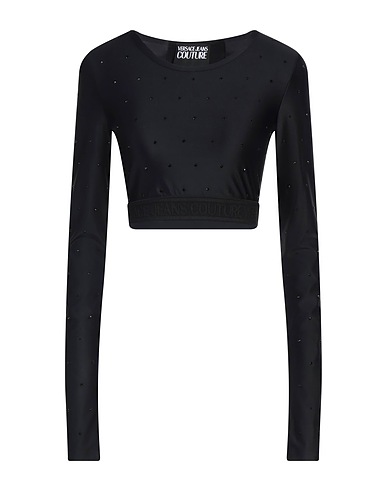 crop top, jersey, plain colour with appliqués, crystals, brand logo, crewneck, long sleeves, stretchy fabric, machine wash, do not bleach, do not tumble dry, this brand runs small