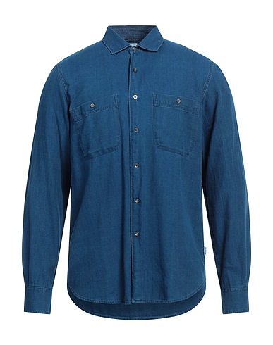 chambray, plain colour, no appliqués, medium wash, classic collar, long sleeves, buttoned cuffs, button fastenings, two chest pockets, contains non-textile parts of animal origin, machine wash or dry clean, do not bleach, tumble dry, this brand runs small