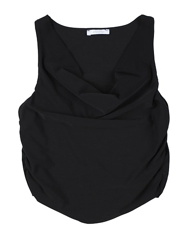 synthetic jersey, stretchy fabric, plain colour, gathered, draped neckline, sleeveless, fully lined, machine wash or dry clean, do not bleach, tumble dry