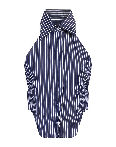 top, poplin, striped, no appliqués, classic collar, sleeveless, unlined, concealed button fastenings, dry clean, tumble dry