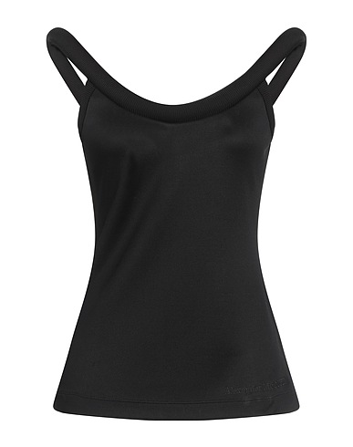 top, knitted, lightweight knit, plain colour, embroidered logo, scoop neckline, sleeveless, partially padded inside, stretch, dry clean, do not bleach, do not tumble dry