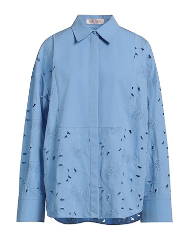 oversized shirt, broderie anglaise, woven, plain colour with appliqués, embroidered, classic collar, long sleeves, concealed button fastenings, dry clean, do not bleach, do not tumble dry