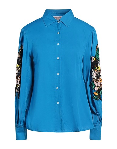 shirt, satin, plain colour with appliqués, sequins, classic collar, long sleeves, buttoned cuffs, button fastenings, hand wash, do not bleach, do not tumble dry