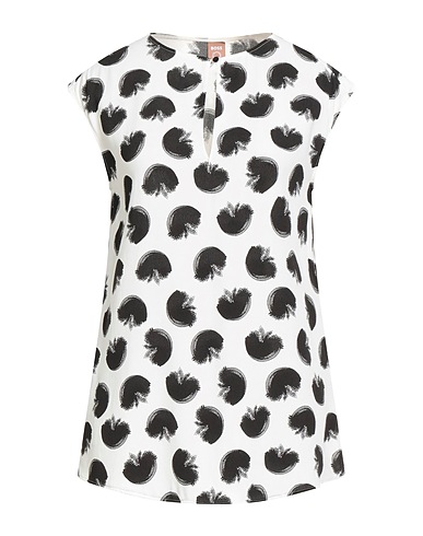 top, crepe, two-tone, no appliqués, crewneck, short sleeves, 1 button, dry clean, do not bleach, do not tumble dry