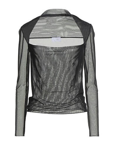 top, tulle, plain colour, no appliqués, draped neckline, long sleeves, stretch, hand wash or dry clean, do not bleach, do not tumble dry