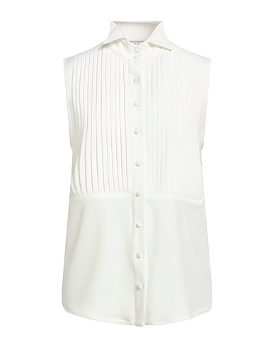 shirt, twill, stretchy fabric, plain colour, pleated, classic collar, sleeveless, button fastenings, dry clean, do not bleach, do not tumble dry