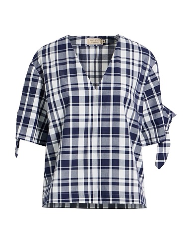 top, woven, checked, bow-detailed, v-neck, short sleeves, machine wash or dry clean, do not bleach, do not tumble dry