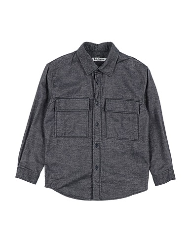 flannel, denim effect, plain colour, no appliqués, classic collar, long sleeves, button fastenings, two chest pockets, machine wash or dry clean, do not bleach, tumble dry