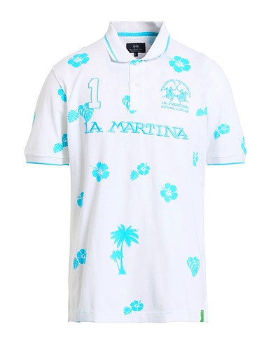 piqué, hawaiian-print, embroidered logo, buttoned neckline, short sleeves, machine wash, do not bleach, do not tumble dry