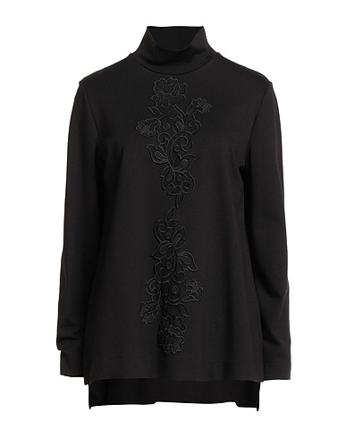 t-shirt, jersey, stretchy fabric, plain colour with appliqués, embroidered, mock neck, long sleeves, dry clean, do not bleach, do not tumble dry