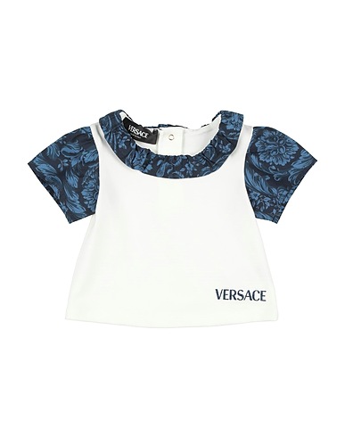 jersey, poplin, stretchy fabric, multicolour, brand logo, ruffles, crewneck, short sleeves, snap fastenings, hand wash, do not bleach, do not tumble dry