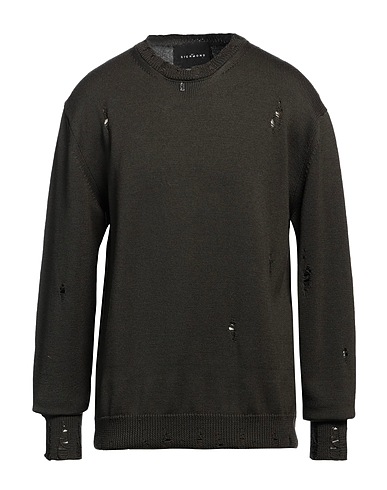 wool, lightweight knit, distressed, brand logo, plain colour, crewneck, long sleeves, hand wash, do not bleach, do not tumble dry, do not iron