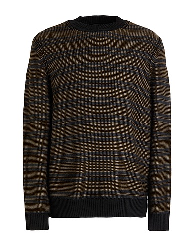 jacquard, medium-weight knit, striped, brand logo, crewneck, long sleeves, machine wash or dry clean, do not bleach, do not tumble dry
