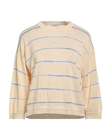knitted, metallic, lightweight knit, striped, no appliqués, crewneck, 3/4 length sleeves, hand wash or dry clean, do not bleach, do not tumble dry, this brand runs small